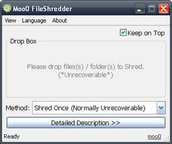 Moo0 FileShredder è un'utilità gratuita per Windows progettata per garantire la cancellazione sicura dei file. Questo strumento permette agli utenti di eliminare definitivamente i dati dal proprio sistema, impedendo il recupero da parte di software di recupero dati. La sua interfaccia è semplice e intuitiva, rendendo facile l'uso anche per chi non ha esperienza tecnica.